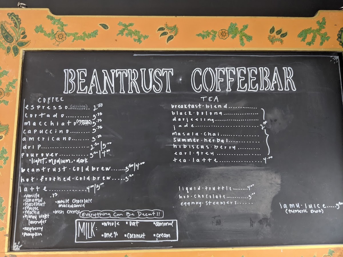 Beantrust Coffeebar Menu